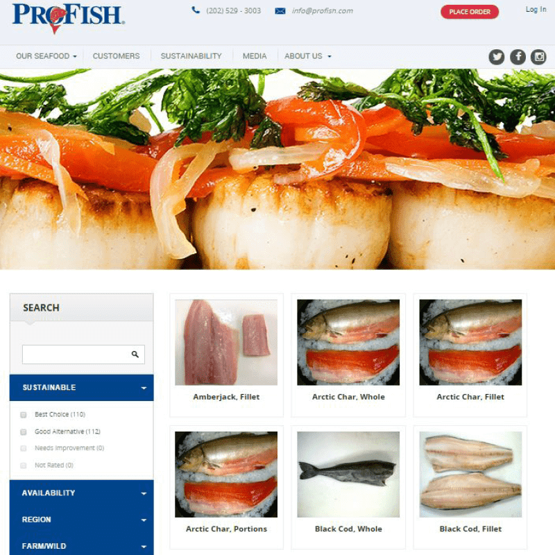 Profish sources seafood from fishermen that utilize sustainable fishing methods. The company also partners with sustainable seafood programs such as Monterey Bay Seafood Watch, Noaa FishWatch, and Virginia Aquarium Sensible Seafood. Our chefs can search our website by sustainability rating, simplifying the task of buying sustainable.